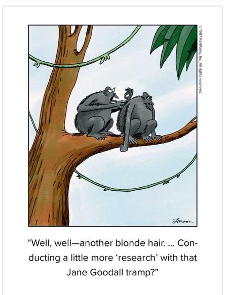 Lastly, Jane never took herself seriously. When Gary Larsen published a cartoon of her, the Jane Goodall Institute spluttered with outrage, saying it was disrespectful. Instead, Jane found it hilarious.